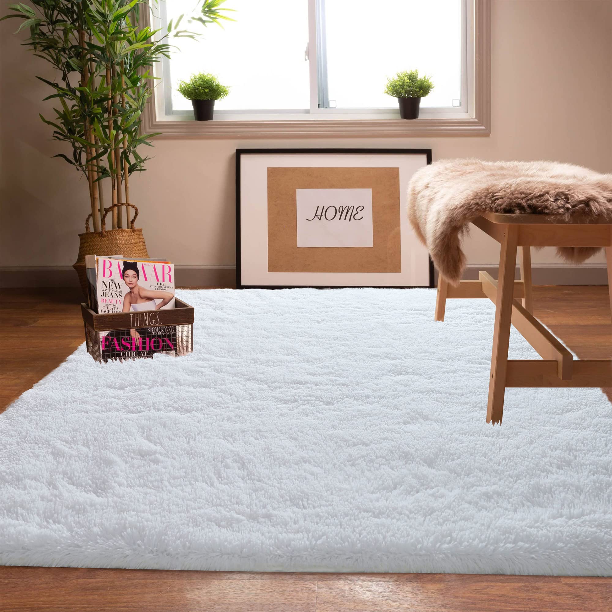 Amazon Com Jorkei White Area Rugs For Bedroom 5x7 Feet Plush Furry Shag Rug Indoor Modern Plush Area Rugs For Living Room Bedroom Kids Room Kids Playroom Home Decor Floor Carpet Home Kitchen